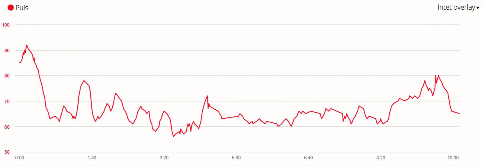 The graph shows the pulse between the first two treatments. Data recorded with a Garmin Fenix 6X Pro Solar.